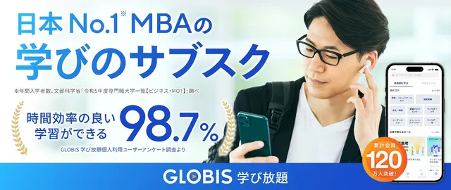 目のまえの業務をこなしているだけではなかなか身につけることが難しいとされるそんなスキルを、忙しい日々のなかで、効率よく、効果的に、仕事や職場ですぐに活かせるノウハウを身につけられる学びの場、それが累計会員数120万人(※)を誇る学びのサブスク「GLOBIS 学び放題」です。