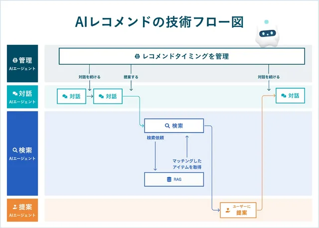 この自然なレコメンド体験の裏側では、4つの異なる役割を持つAIエージェントが連携して動作しているという、独自のアーキテクチャが採用されている。