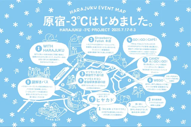 花王や東急不動産、渋谷区など9つの企業・行政・団体からなる「原宿避暑地化実行委員会」が2025年7月17日から8月3日にかけて実施するのは、『原宿-3℃はじめました。プロジェクト』。