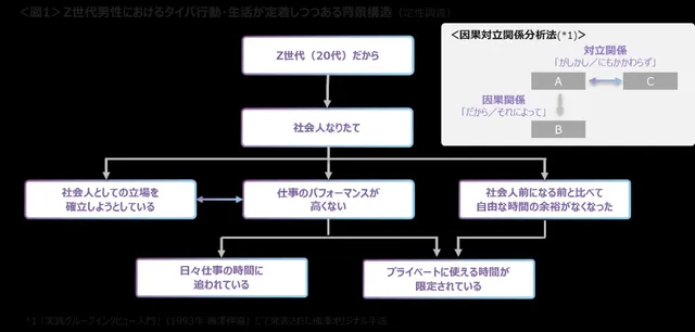 クロス・マーケティング社が首都圏在住の23歳から29歳の男性を対象に行ったオンライングループインタビューによると、Z世代男性のタイパ生活の背景には、特有の心理状況があるようだ。