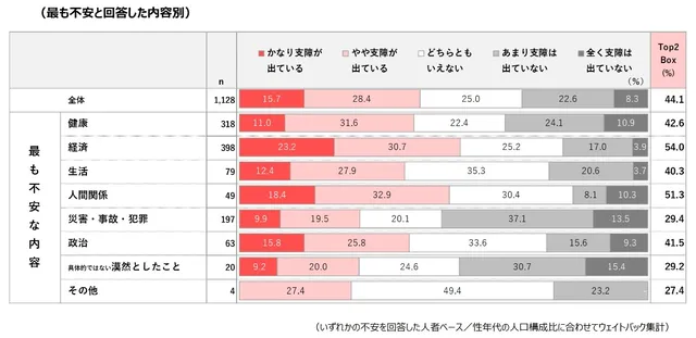 ほぼ全世代が一番不安に感じるのは「経済」、若い世代は「SNSによる不安助長」も