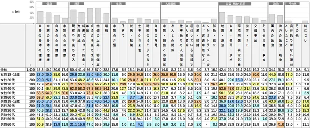 また、10代から40代の現役世代では「自身の心の健康」も不安要素の上位に入っており、経済的なプレッシャーがメンタルヘルスにも影響を与えている可能性が示唆される。