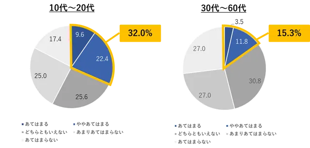 その結果、若者にとって身近なツールであるSNSが、不安を助長する一因となっていることが明らかになった。「SNSを見ると不安になることが多い」と感じている若者は約3割にのぼり、この割合は30代以上の世代と比較して2倍以上となっている。