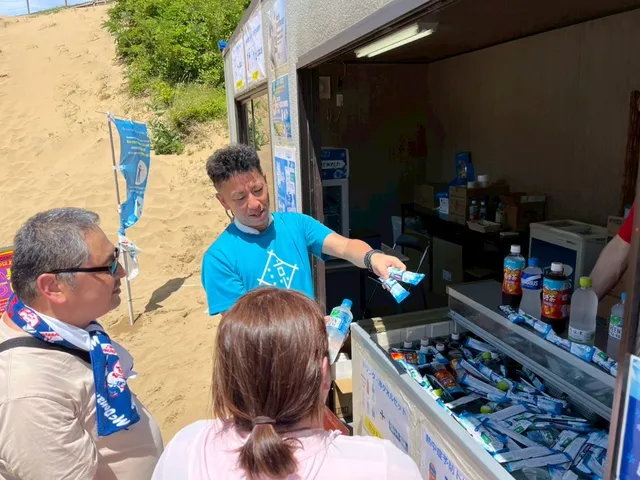 猛暑の鳥取砂丘にビオレの冷タオル、観光客と従業員を守る連携策