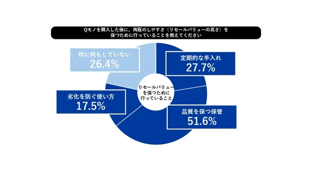 さらに、購入後も価値を保つために「品質を保つための保管をしている」(64%)など、約9割が具体的な行動をとっていることもわかった。売却を前提とした消費行動が、若い世代を中心に広まっている様子がうかがえる。