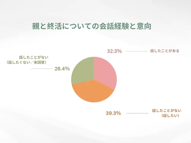 同社が2025年7月に行った調査によると、親と「終活」について話したことがある人は32.3%にとどまり、67.7%は一度も話したことがないと回答した。