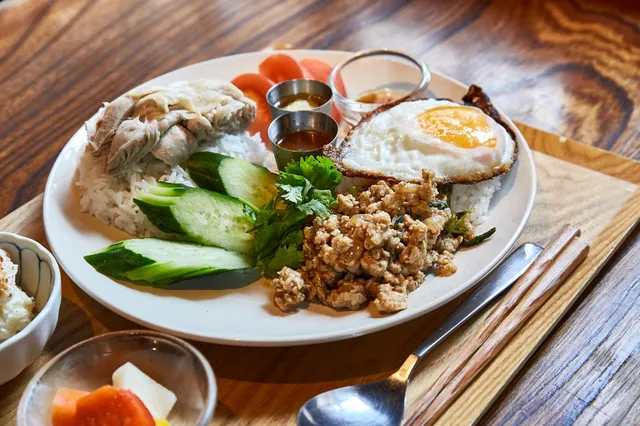 来訪時はカオマンガイとガパオライスの2種類を一皿で味わうことができる、スペシャルタイごはん プレートランチ(2,290円)を提供。
