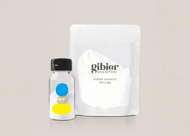 『Gibier Powder Shampoo』は、一般的なシャンプーの70〜90%を占める水を完全に排除したパウダー処方。