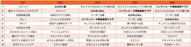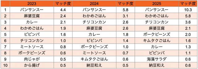 クックパッドの調査では、「バンサンスー」の検索数が昨年比1.8倍、「わかめごはん」が1.9倍に増加している。これらは家庭で再現しやすい、栄養価の高い人気給食メニューの代表例といえる。