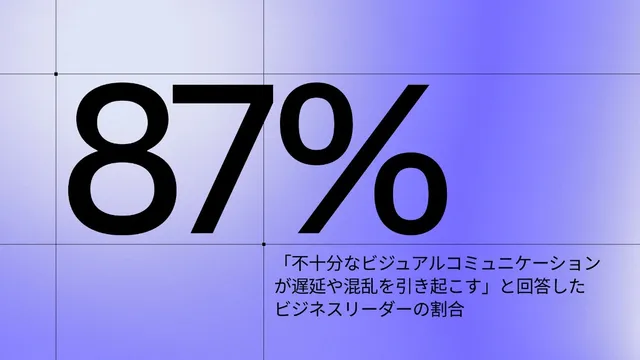 ビジネスリーダーの87%が、ビジュアルコミュニケーションの不足が遅延や混乱につながると回答しており、課題は広く認識されている。