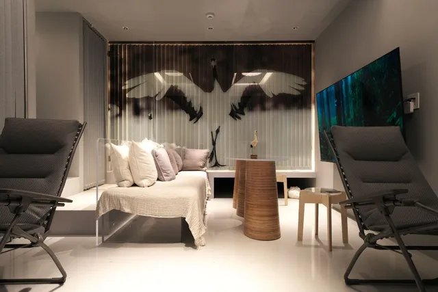 まるで湖に飛び込むような全身没入型の体験は、「ととのい」の効果を最大限に高めることを意図して設計された。