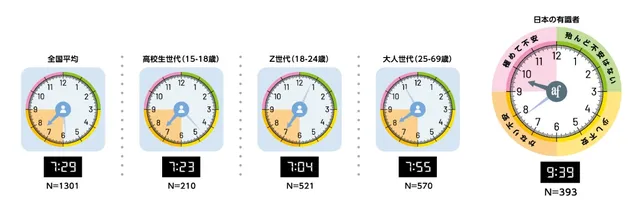 世代別では、大人世代が「7時55分」と最も危機意識が高く、高校生世代は「7時23分」、Z世代は「7時4分」という結果になった。