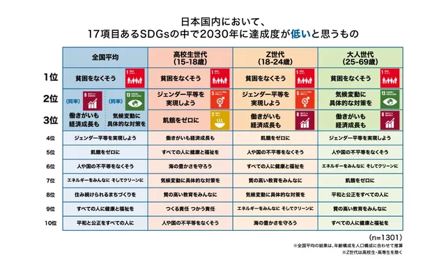 この調査は、全国の10代から60代の男女1,301名を対象に実施されたもので、今回初めて15歳から18歳の高校生世代が調査対象に加えられた。