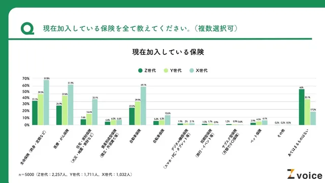 この調査は、Z世代、Y世代、X世代の計5,000人を対象に実施されたもので、「若者の保険離れ」とも言われる実態が、世代比較を通じて明らかになっている。