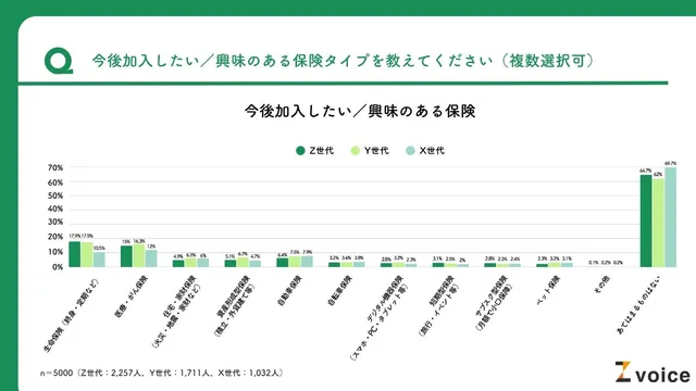 特にZ世代ではその割合が7割を超えており、保険に対する関心の低さが未加入の大きな要因となっていることが示唆された。