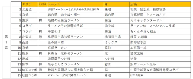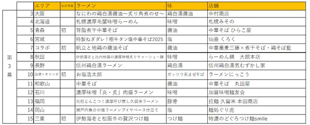 会期は3つの幕に分かれており、第1幕から第3幕まで、それぞれ13店舗ずつ、合計39種類のラーメンが提供されるとのこと。