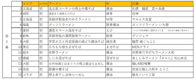 第2幕(10月27日〜30日)は、イベント初出店の人気店が集結。北海道の人気店や、深夜にしか食べられないという愛媛の一杯、そして2023年に閉店した東京・目黒の名店が4日間限定で復活するとのこと。