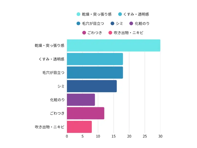 夏のダメージが、乾燥だけでなく、くすみや毛穴の目立ちといった形で複合的に現れる傾向があることがうかがえる。