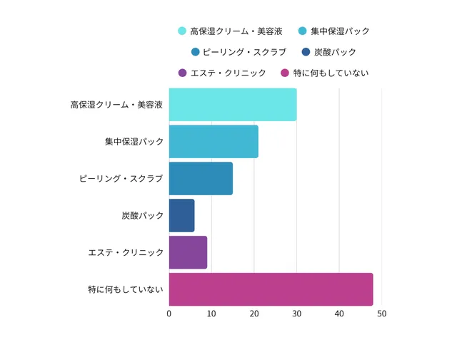 一方で、「夏の間に受けた肌ダメージに対し、どのようなスペシャルケアをしていますか」という問いには、約半数(48%)が「特に何もしていない」と回答。
