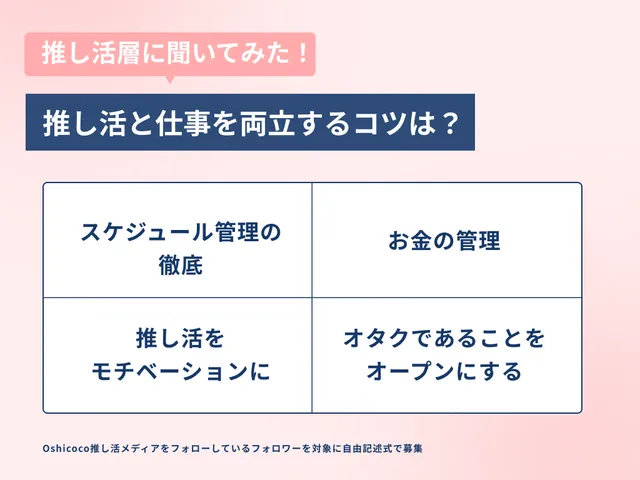 推し活と仕事を両立させるコツとして最も多く挙げられたのは、「スケジュール管理を徹底する」こと。
