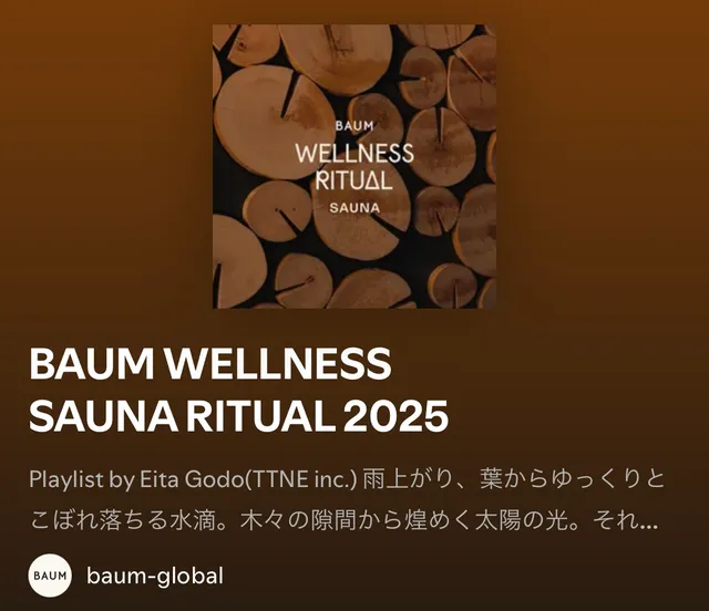 イベント中に浴室で流されていたという伍堂英太氏選曲のプレイリストは、BAUMの公式Spotifyで公開中。