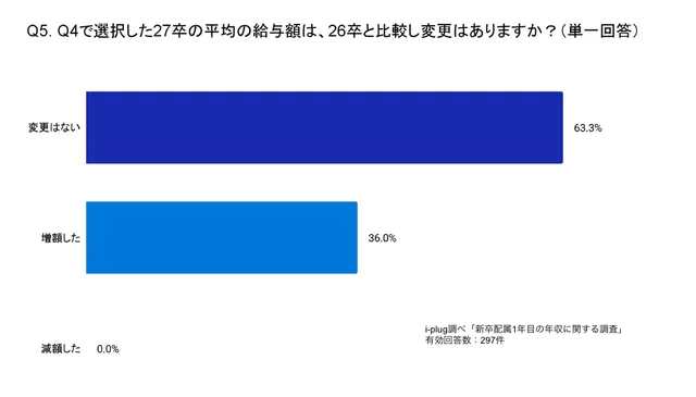 企業の動向としては、27卒の平均給与額を26卒と比較して「増額した」と回答した企業が36.0%に上った。