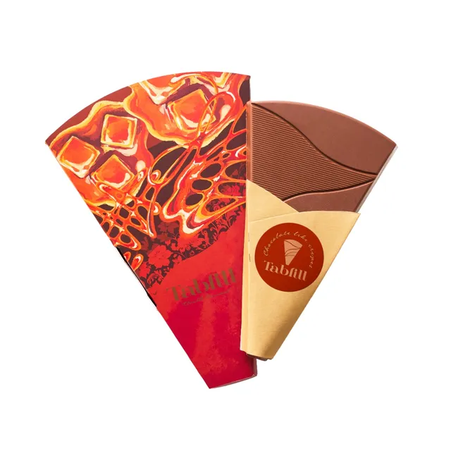 とろりとしたソースや濃厚なガナッシュをたっぷりと包み込んだ、まるでクレープのような形のタブレットチョコレートだという。