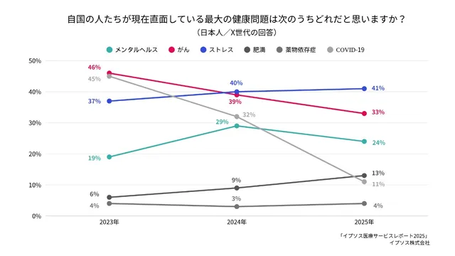 世界最大規模の世論調査会社イプソスが、「最大の健康問題」に関する世代別の意識調査の結果を発表した。