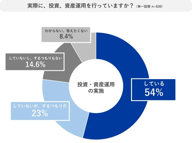 調査によると、20〜30代の54%が「投資・資産運用を行っている」と回答。
