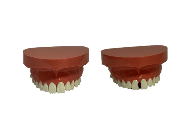 今回発売される商品は、上前歯の中央部分に赤黒いラインを一本引くことで、あたかも歯と歯の間に隙間があるかのように見せる仕組みを採用しているらしい。
