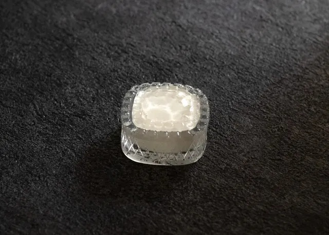 開発の背景には、「正倉院の宝物の中に、光をまとう菓子が存在したなら」という空想があるそうだ。その思想を現代的に翻訳するために、3DCADを用いて光の経路そのものを味の一部として設計しているという。