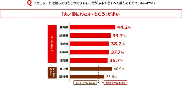また、夫婦間でチョコレートを分け合う「シェア行動」も活発であり、これがコミュニケーションのきっかけとなり、心の充足感につながっているのかもしれない。
