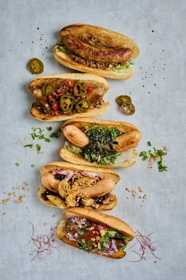 祐天寺「マルニハム」や沖縄「TESHIO」などから選んだソーセージに、自社オリジナルも加え、ホットドッグは5種。看板の「ポーク×レモングラス」はマルニハムと共同開発で、水の代わりにビールを練り込む設計だ。店のオリジナル“レモングラス”ラガーともつながる。ホットドッグは11:00〜18:00、夜はソーセージ中心のディナーメニュー(18:00〜22:30)へ切り替わる。
