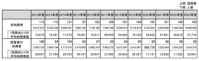 調査によると、全国には161の対象施設が存在し、2010年の調査開始以来、増加傾向にあることが確認された。また、コロナ禍で大きく落ち込んだ利用者数は回復基調にあり、2023年度には延べ約180万人に達したという。