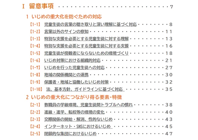 分析結果を基に作成された「いじめの重大化を防ぐための留意事項集」には、これまで学校現場で介入が難しいとされていた「交際関係の開始・解消」や「部活動」がいじめ重大化のリスク要因として盛り込まれている。