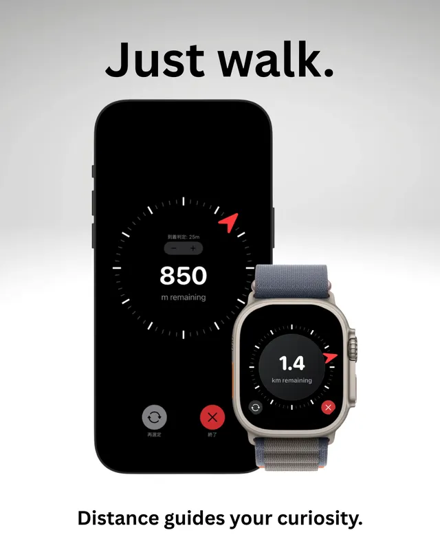 同アプリは、近くの場所をランダムに目的地として選び、行き先の名前を明かさないまま案内する仕組みが特徴だ。