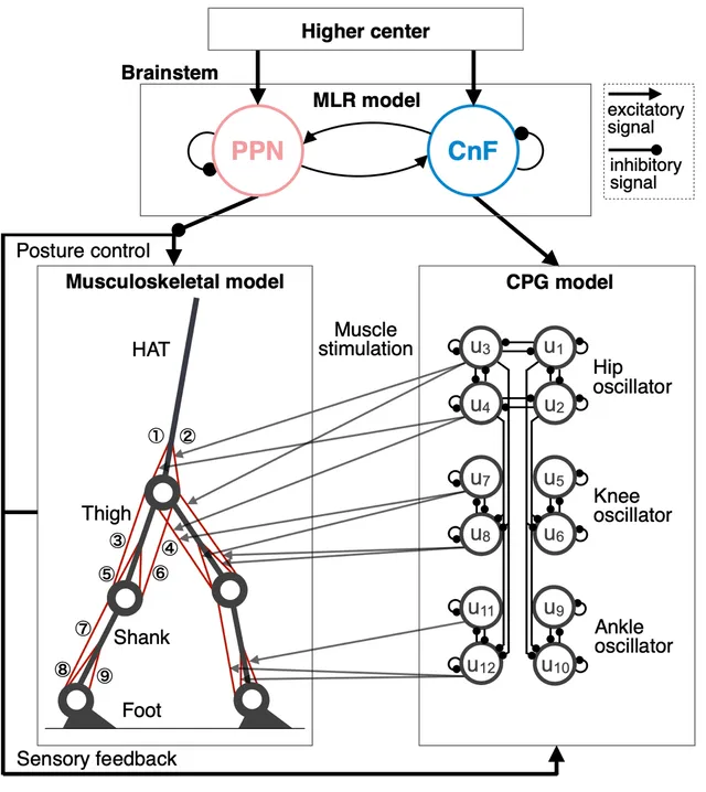 さらに、神経・筋肉・骨格の動きを再現する神経筋骨格モデルを用いて、歩行障害の再現や介入効果の予測を行う。