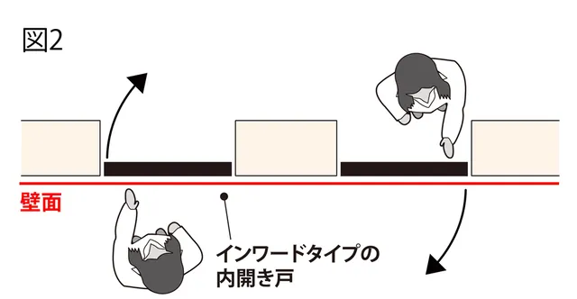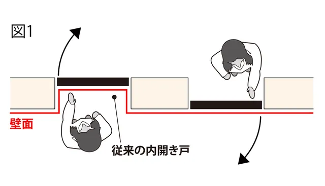 特にトイレのように外開きが必要なドアと混在する場合、意匠性を損なう要因になっていたといわれている。