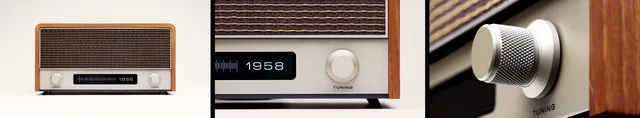 見た目は、1950〜60年代のラジオそのもの。レトロなダイヤルがついた筐体は、昭和の居間にあったあの存在感をそのまま再現しています。ただし、ダイヤルで合わせるのは周波数ではありません。1950年から2025年まで、1年刻みで「西暦」を選びます。