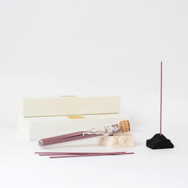 プロダクトデザインにも、同ブランドらしい遊び心が光ります。お香立てのモチーフはなんと「唇」。一点一点ハンドメイドで制作されており、色付けに使われるピグメント(顔料)の酸化具合によって、重さや色合いに個体差が生まれるそうです。素材には「ジェスモナイト」と呼ばれるVOC(揮発性有機化合物)や有機溶剤を含まない新素材が採用されており、人体にも環境にも配慮されています。置くだけで空間のアクセントになるアート性は、インテリアとしての存在感も十分でしょう。