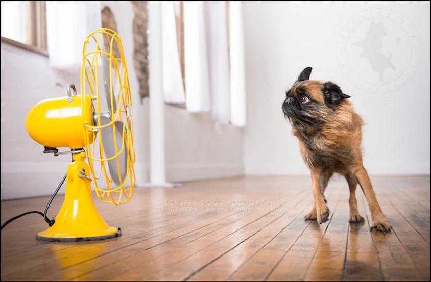 「風ニモマケズ」扇風機の強風に犬たちの毛はどうなびく?